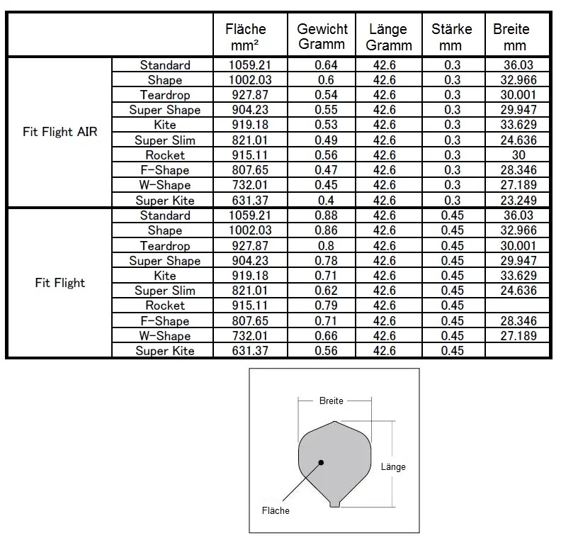 Die Bauart dieser Flights sorgt für einen perfekten 90 Grad Winkel der Flügel, wodurch die Flugbahn optimiert wird.