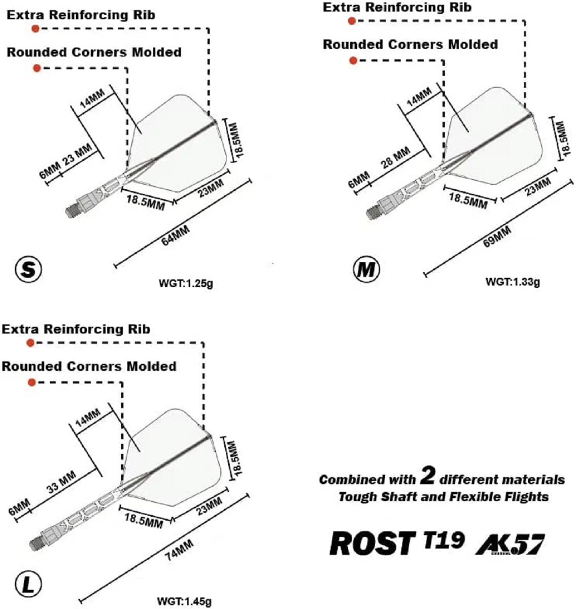 Die T19 Cuesoul Shaft/Flights sind eine Kombination aus AK5 Flights und AK7 Shafts. Die Kombination wird auch AK57 bezeichnet!