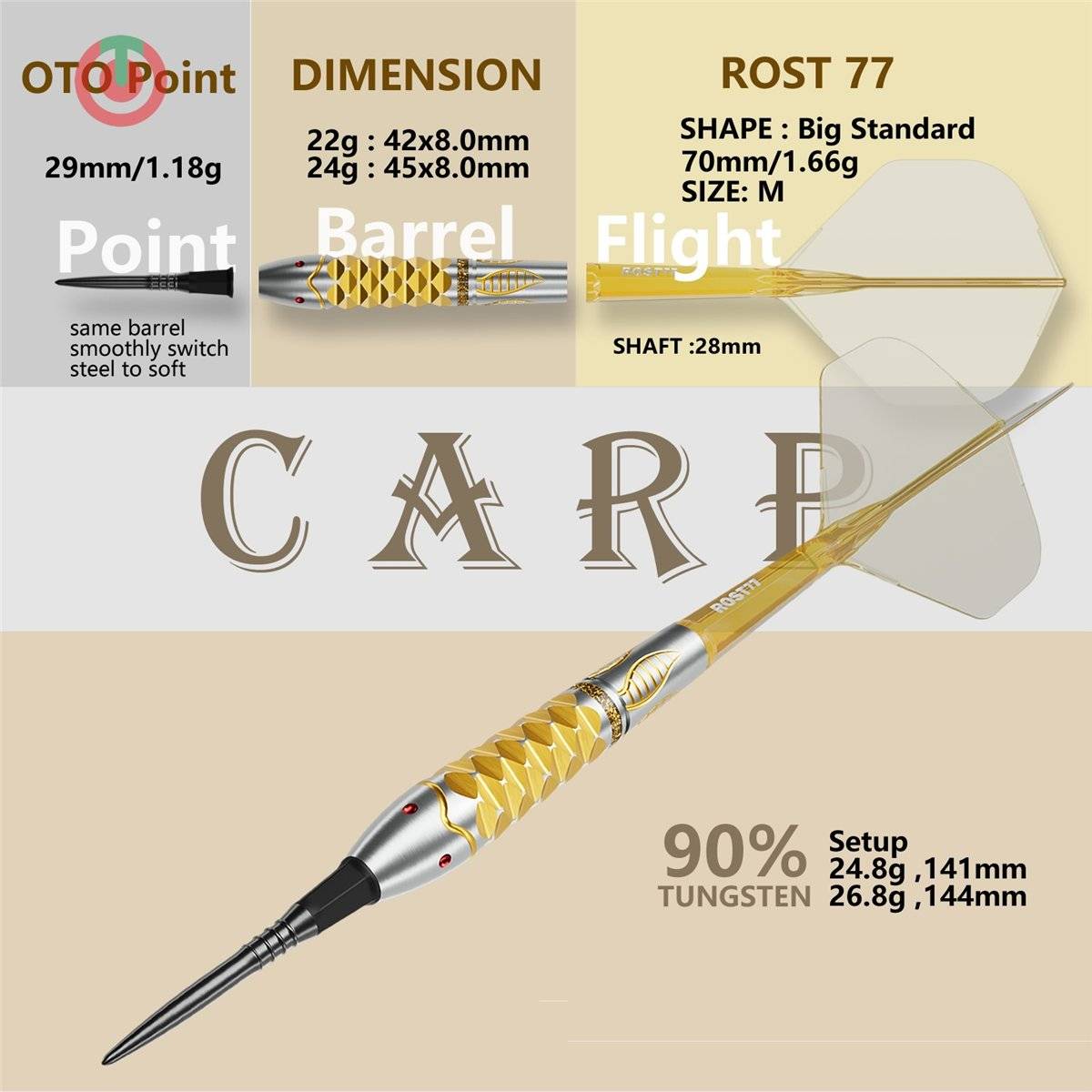 Produktinformationen "Cuesoul Forest Carp 90% Softdarts + Conversion Points No.5 22/24 Gramm Softdarts"