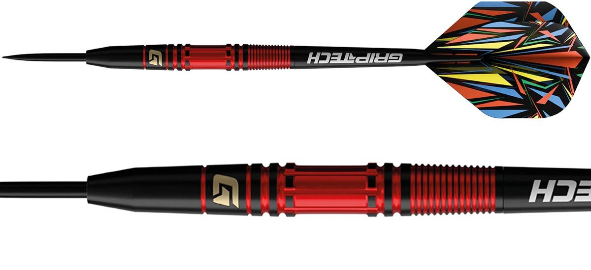 Gefertigt aus hochwertigem 90 % Tungsten, bieten die Barrels eine schlanke Form für präzise Würfe und enge Gruppierungen. Moderne, fein gearbeitete Gripzonen sorgen für sicheren Halt und ein kontrolliertes, gleichmäßiges Wurfgefühl. Das intensive rote Finish steht für Entschlossenheit, Energie und Mut und verleiht den Darts eine markante, selbstbewusste Optik am Oche.
