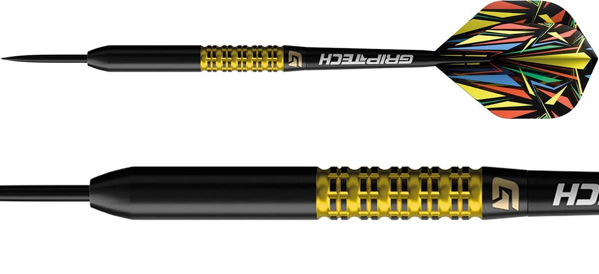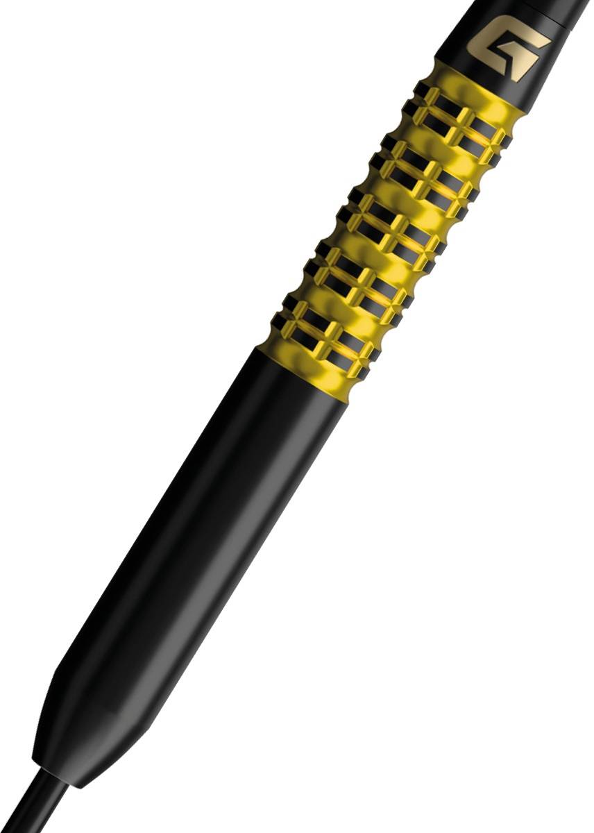 Die 90 % Tungsten Barrels bieten eine schlanke Form und optimale Balance für ein konstant präzises Wurfgefühl. Moderne, fein ausgearbeitete Gripzonen sorgen für sicheren Halt und unterstützen einen kontrollierten, sauberen Release. Das auffällige gelbe Finish steht für Leidenschaft, Dynamik und die positive Energie des Sports und verleiht den Darts eine starke optische Präsenz am Oche.