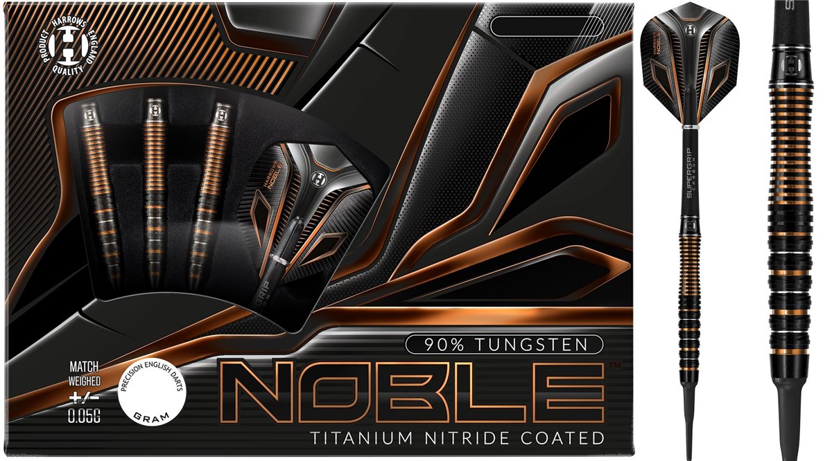 Die Harrows Noble Darts bestehen aus einem 90% Tungsten Barrel.