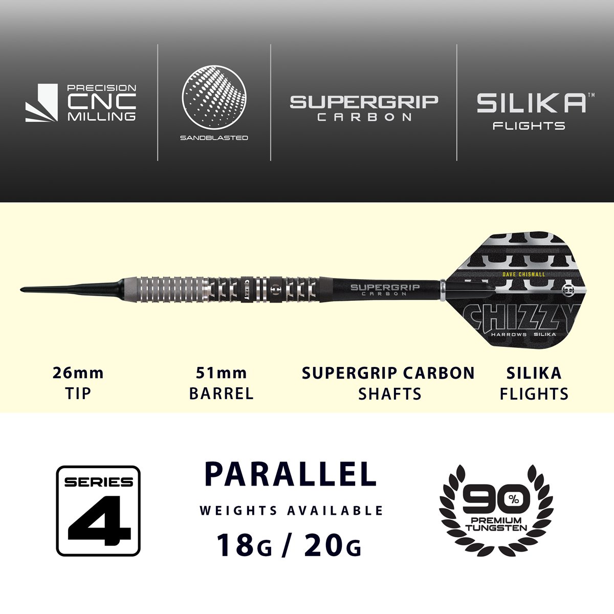 Angebot: Harrows Dave Chizzy Chisnall G4 90% Softdarts 18/20 Gramm