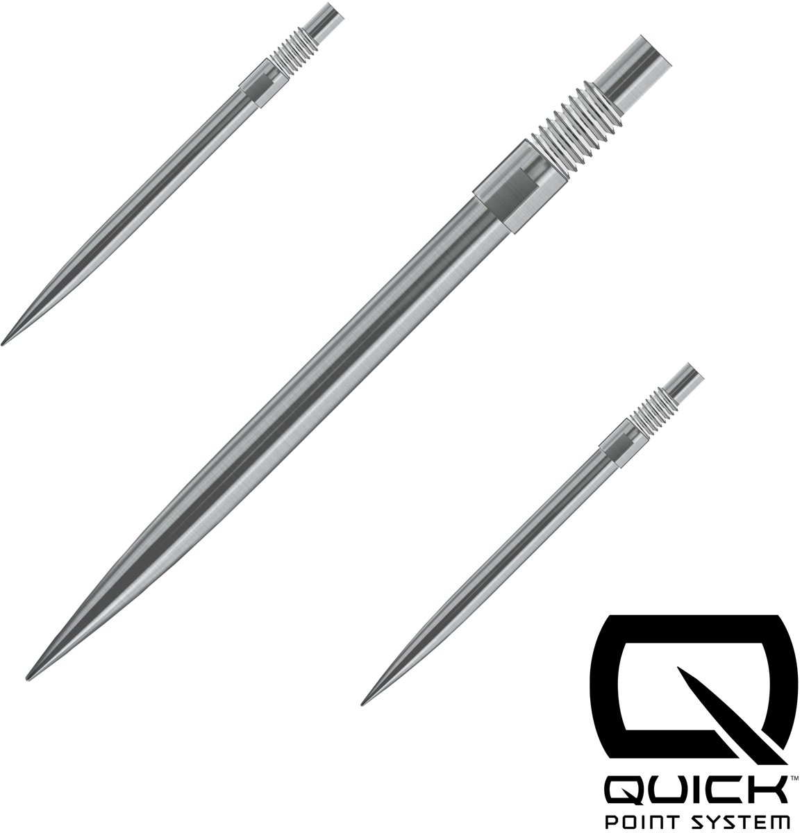 Quick Points sind zunächst in den Längen 30 mm, 35 mm und 40 mm sowie in eleganten silbernen oder schwarzen Ausführungen erhältlich und ermöglicht dir die Feinabstimmung deiner Darts auf dein Spiel.