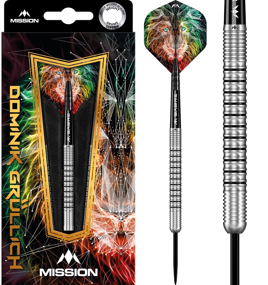 Produktinformationen "Mission Dominik Grüllich 95% Silver-Black Rings 21,5/23,5/25,5 Gramm Steeldarts"