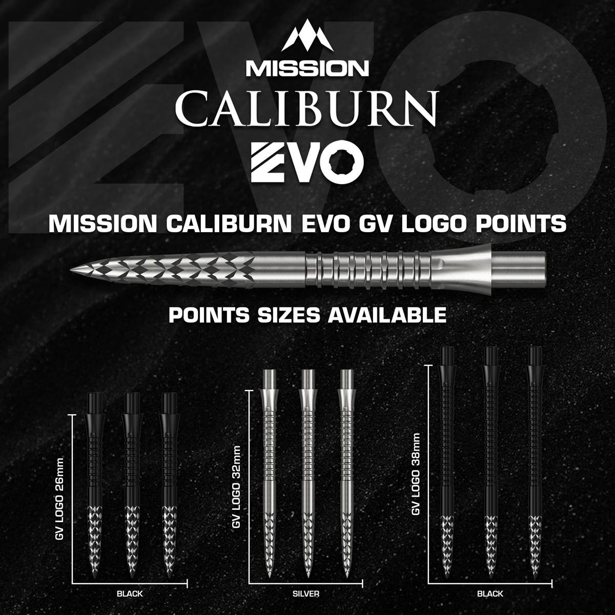 Produktinformationen "Mission EVO Point GV-Logo Silber/Schwarz 26/32/38 mm EVO-System Wechselspitzen"
