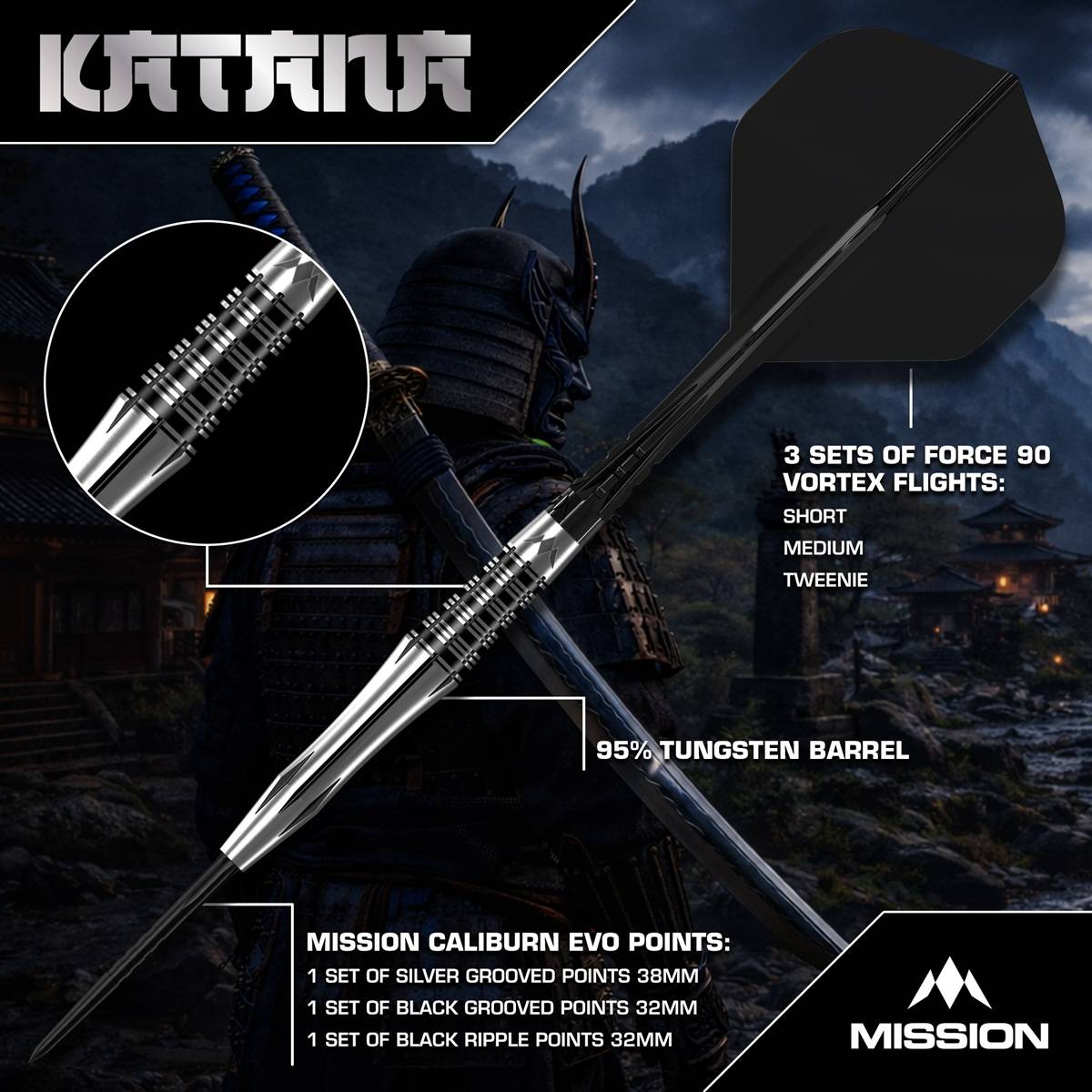 Produktinformationen "Mission Katana 95% Steeldarts 22/24 Gramm Steeldarts"