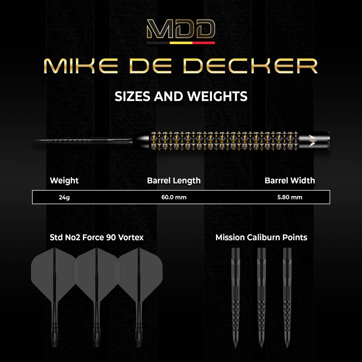 Produktinformationen "Mission Mike De Decker 95% Limited Edition World Grand Prix Steeldarts 24 Gramm Steeldarts"