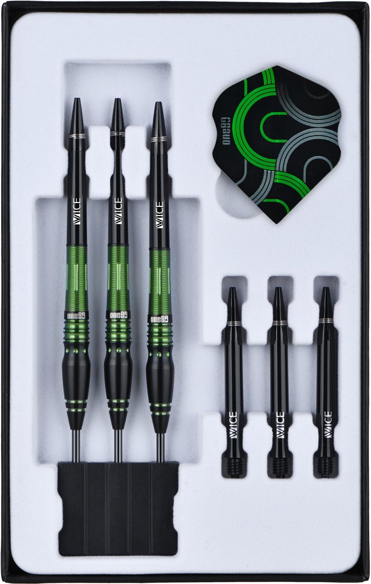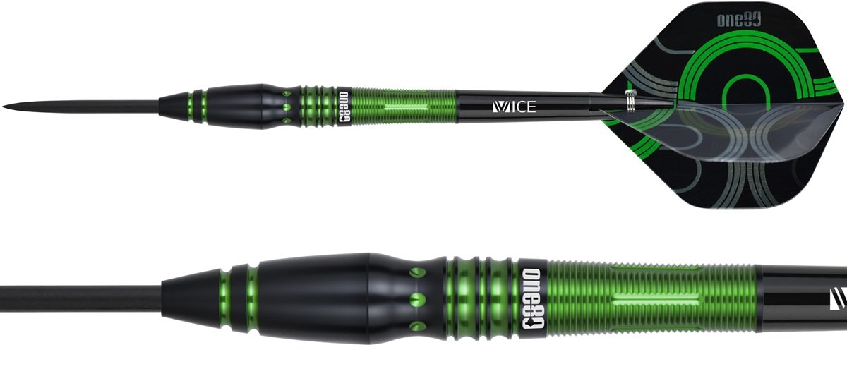 Steeldartpfeile aus dem Hause ONE80 mit 90% Tungsten Anteil. Gewicht= Barrelgewicht.