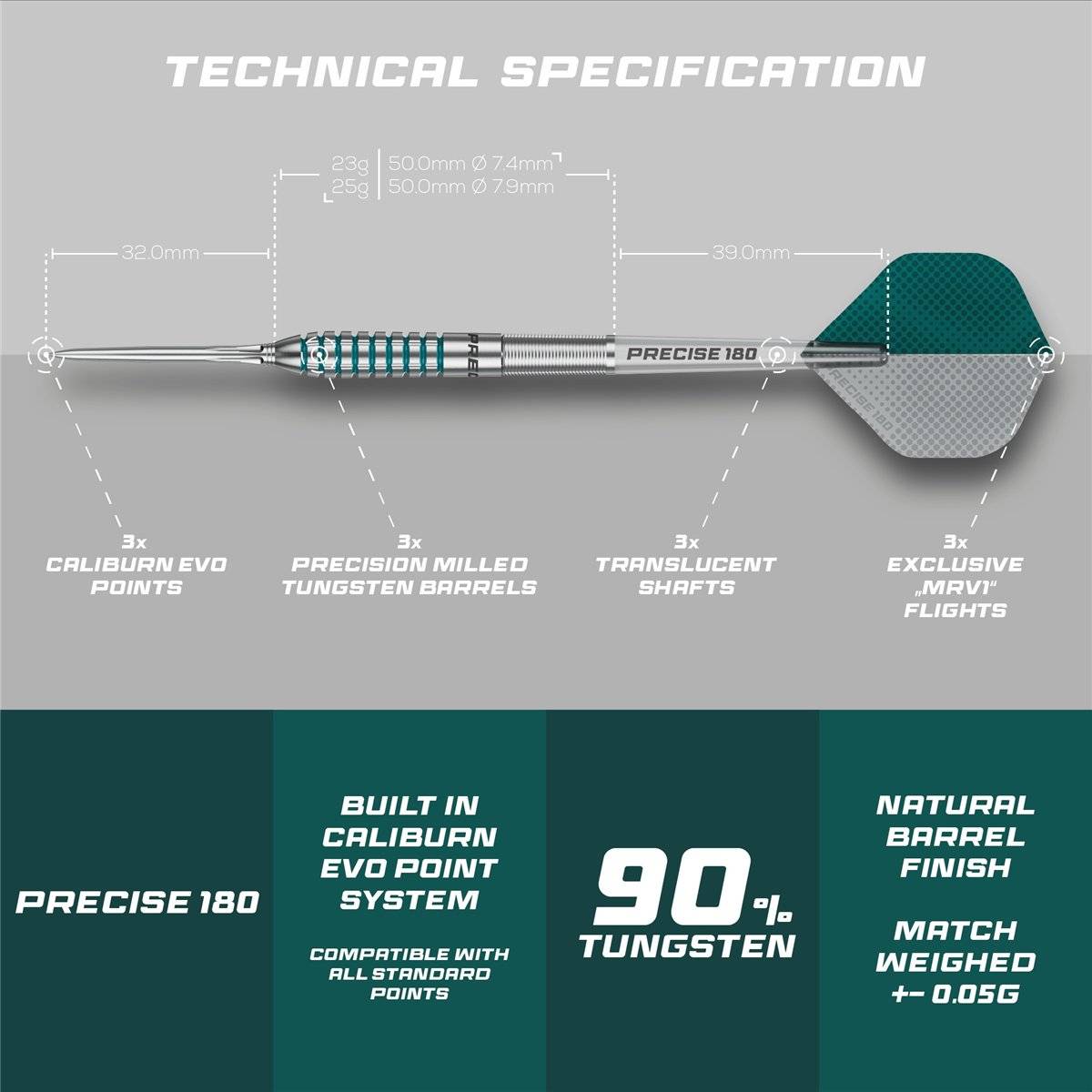 Angebot: Precise180 MRV1 90% Steeldarts 23/25 Gramm
