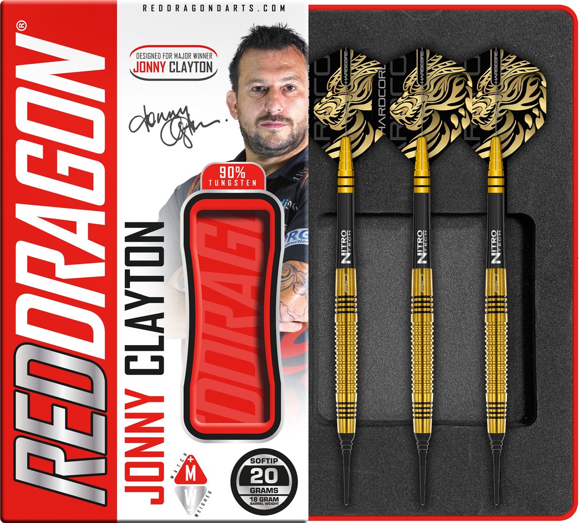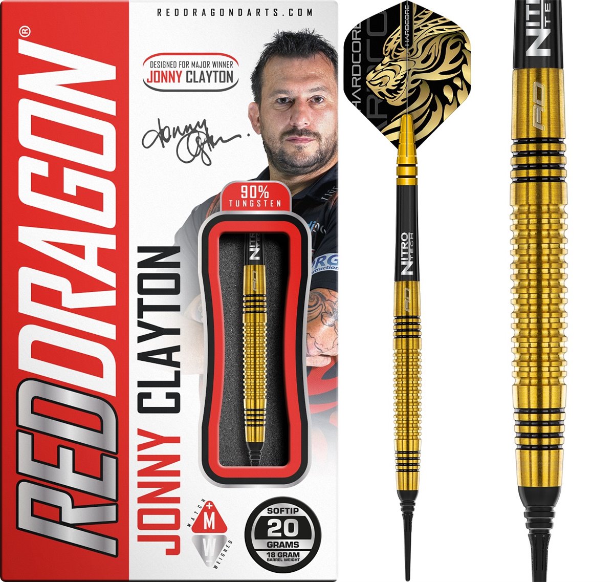 Produktinformationen "Reddragon Jonny Clayton Gold 90% Tungsten Softdarts 20 Gramm Softdarts"