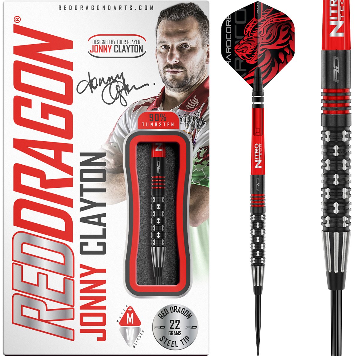 Die Steeldarts von Jonny Clayton aus dem Hause Reddragon haben einen Barrel mit einem Tungsten Anteil von 90%.