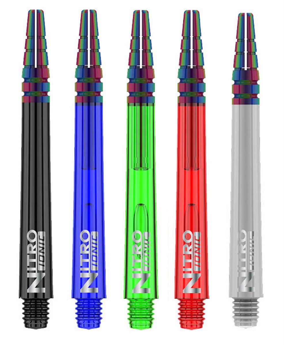 Die Reddragon Nitrotech Ionic Shafts vereinen die Vorteile von Nylon- und Alushafts. Die Flightaufnahme hält den Flight perfekt am Shaft. Das Gewinde aus Polycarbonat sorgt für einen festen Halt der Shafts am Barrel und verhindert somit das leichte Aufdrehen während des Wurfes. Die Shafts gibt es in Short (36 mm) und Medium (42 mm).