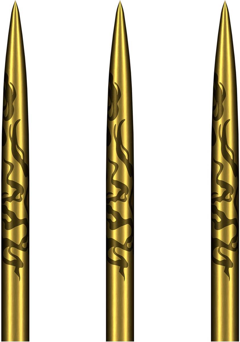 Die Alchemy Gold Steel Points vereinen zuverlässigen Board-Halt mit einem auffälligen Gold-Finish und verleihen deinem Dart-Setup eine hochwertige Optik. Das sanft konische Profil in Kombination mit dem detaillierten, alchemie-inspirierten Muster sorgt nicht nur für elegantes Design, sondern auch für konstante Performance beim Spiel.