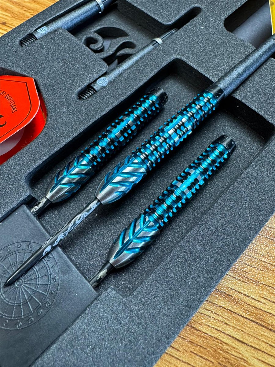 Gefertigt aus 90 % Tungsten überzeugen die Darts durch ihre außergewöhnliche Haltbarkeit und ein schlankes Barrel-Profil. Die kompakte Bauweise ermöglicht engere Gruppierungen im Board, während das ausgewogene Gewicht für ein sicheres und kontrolliertes Wurfgefühl bei jedem Versuch sorgt.