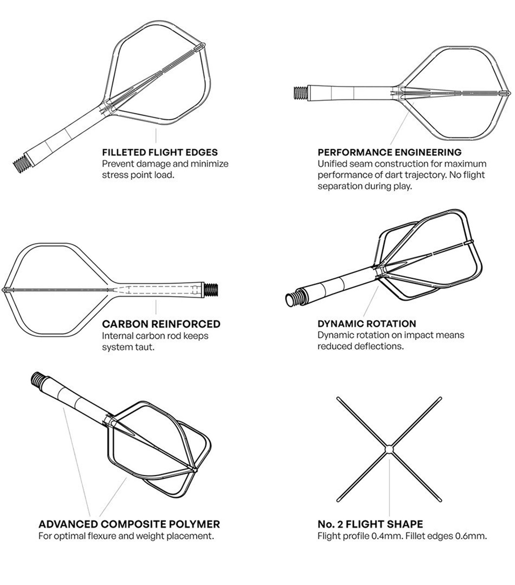Ein leistungsstarkes All-in-One-Flight und Schaftsystem mit einem besonders robusten Kunstoff mit einer Dicke von über 180 Micron.