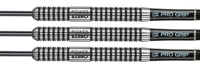 Der Phil Taylor 8Zero Dart hat einen geraden Barrel der durchgehend mit Doppelringen versehen ist, welche jedem Spieler optimalen Grip gewähren. Die Zwischenräume jedes zweiten Ringes sind schwarz gefärbt. Der Dart wird mit black Pro Grip Shafts und Vision Flights ausgeliefert. Der Barrel besteht aus 80% Tungsten