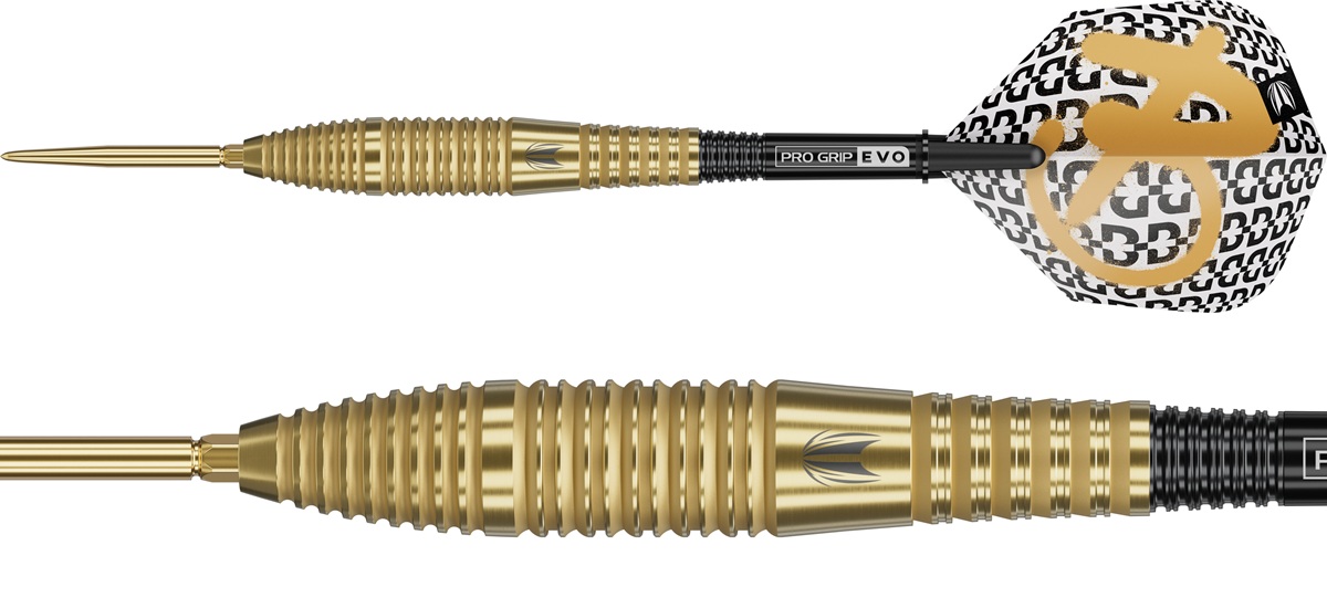 Das edle Gold-Finish hebt die präzise Verarbeitung des Barrels hervor und verleiht den Darts eine hochwertige, auffällige Optik am Oche.