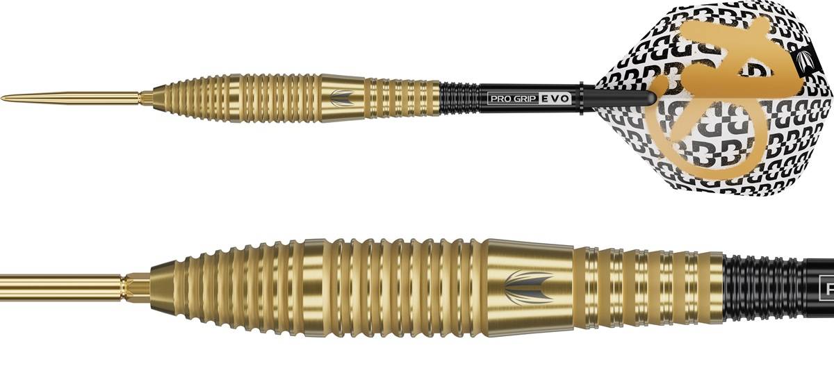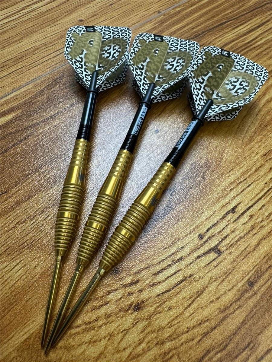Das edle Gold-Finish hebt die präzise Verarbeitung des Barrels hervor und verleiht den Darts eine hochwertige, auffällige Optik am Oche.