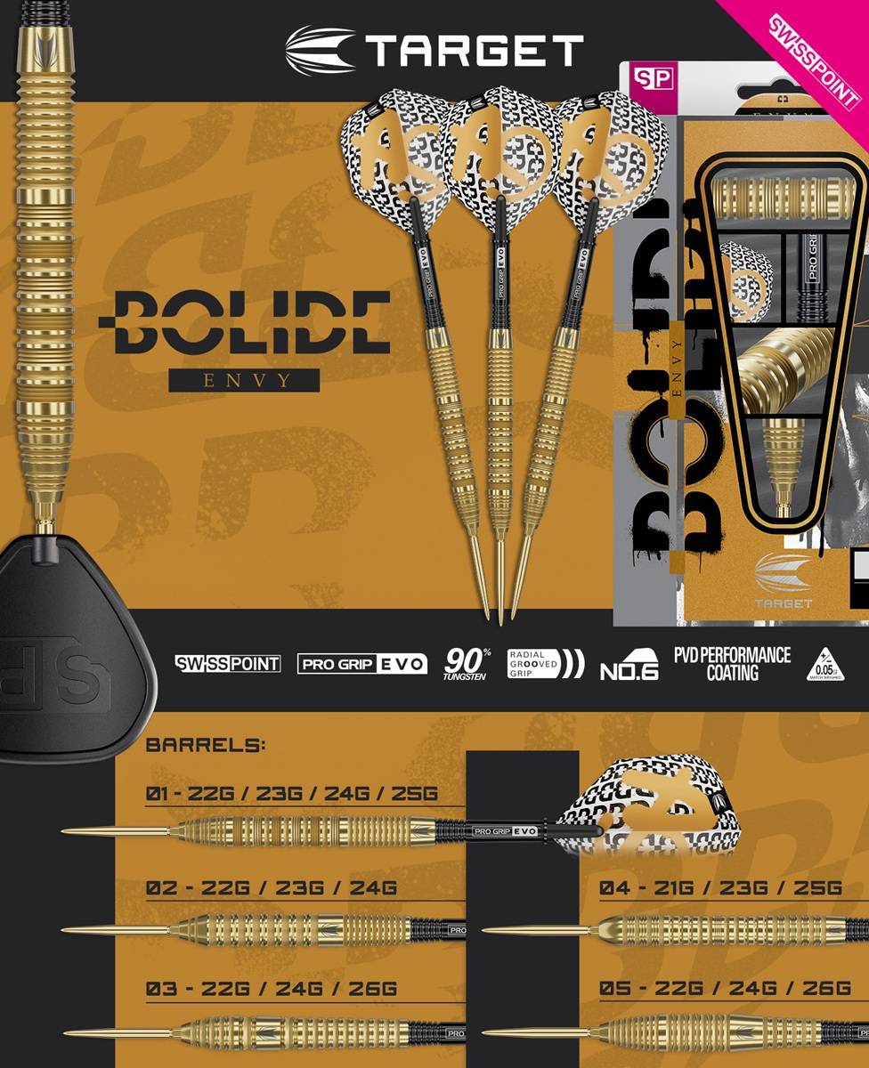 Bolide Envy 05 90% SP Steeltip Darts – Kompakte Power mit edlem Gold-Finish