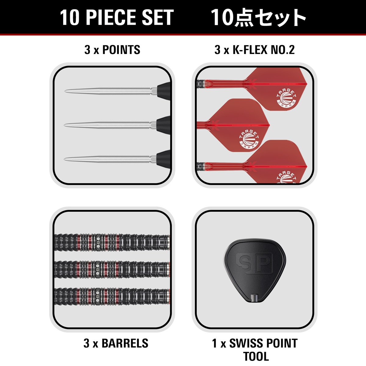 Der Steeldarts von Target Japan Darts hat einen Barrel aus 90% Tungsten und hat das SWISS Point System.