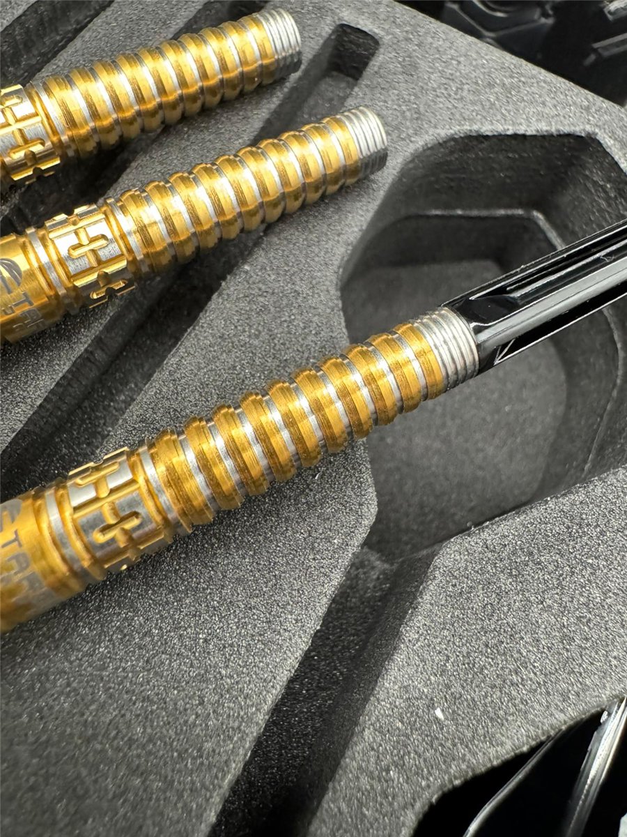 Das edle PVD Gold-Finish in Kombination mit freiliegendem Tungsten verleiht dem Dart einen markanten, modernen Look mit hohem Wiedererkennungswert.