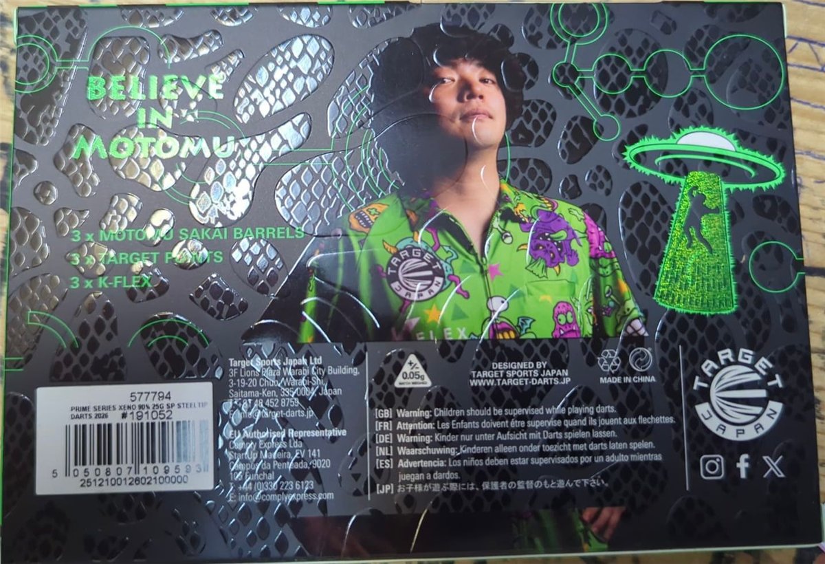Angebot: Target Prime Series Xeno G1 Motomu Sakai Swiss Point 90% Steeldarts 25 Gramm mit Autogramm