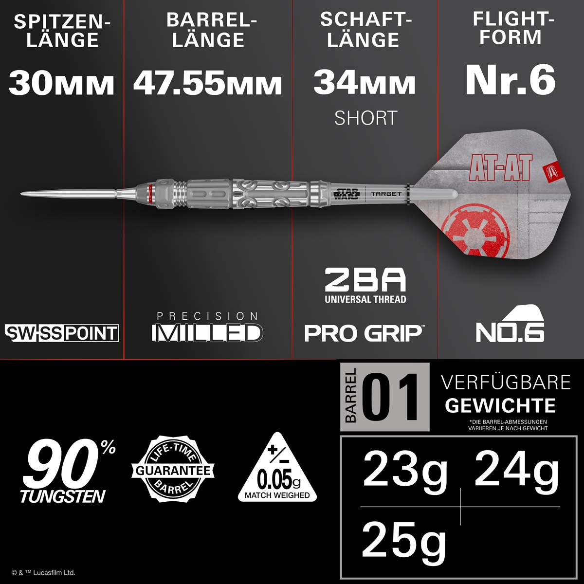 Produktinformationen "Target Star Wars AT-AT Swiss Point 90% Steeldarts 23/24/25 Gramm Steeldarts"