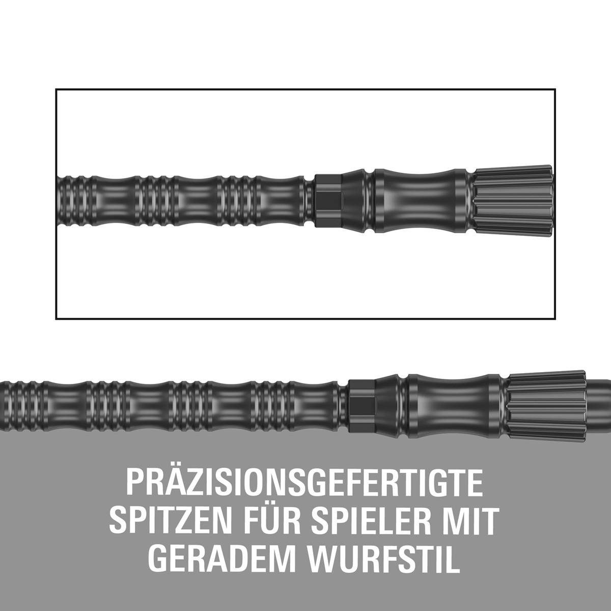 Das TRB-Design verfügt über präzise eingearbeitete Grip-Elemente entlang der Spitze. Diese sorgen für ein ausgewogenes Maß an Board-Grip bei gleichzeitig sauberem und kontrolliertem Eindringen ins Board. So entsteht ein zuverlässiges, konstantes Spielgefühl, ohne das schlanke Gesamtprofil zu beeinträchtigen.