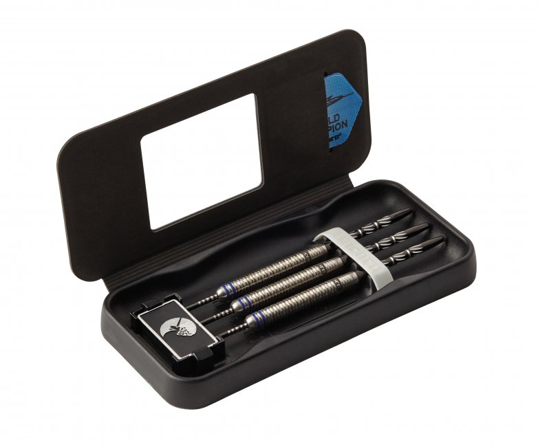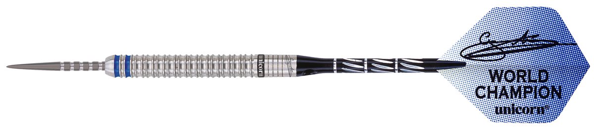 Gary Anderson hat seinen Titel bei der Darts-WM 2016 verteidigt. In einem hart umkämpften Finale setzte sich der Schotte in London gegen den Engländer Adrian Lewis mit 7:5 Sätzen durch. Gary Anderson ist damit Back to Back PDC World Champion 2015/2016. Seine Phase 3 Tungsten Darts haben einen einheitlich durchgehenden Grip. Gary Anderson bevorzugt das Modell in 23g. Das Gewicht ist mit einer Toleranz von +/- 0,1g garantiert. Das Darts-Set ist in 21g, 23g, 25g und 27g erhältlich. Diese Darts sind in einer hochwertigen 90% Tungsten Qualität gefertigt und sind durch zwei farbige blaue Ringe als WM Darts 2016 unverwechselbar. Die Barrels sind mit dem Unicorn Logo und der Unterschrift des amtierenden Weltmeisters graviert. Lieferung beinhaltet Unicorn World Champion Aluminium Schäfte und World Champion Spieler Flights. Das Set wird in dem neuen und unvergleichbaren Unicorn ICON-Case ausgeliefert.Barrelmaße 25g: Länge= 52,3 mm D1= 6,63 mm D2= 6,63 mm.