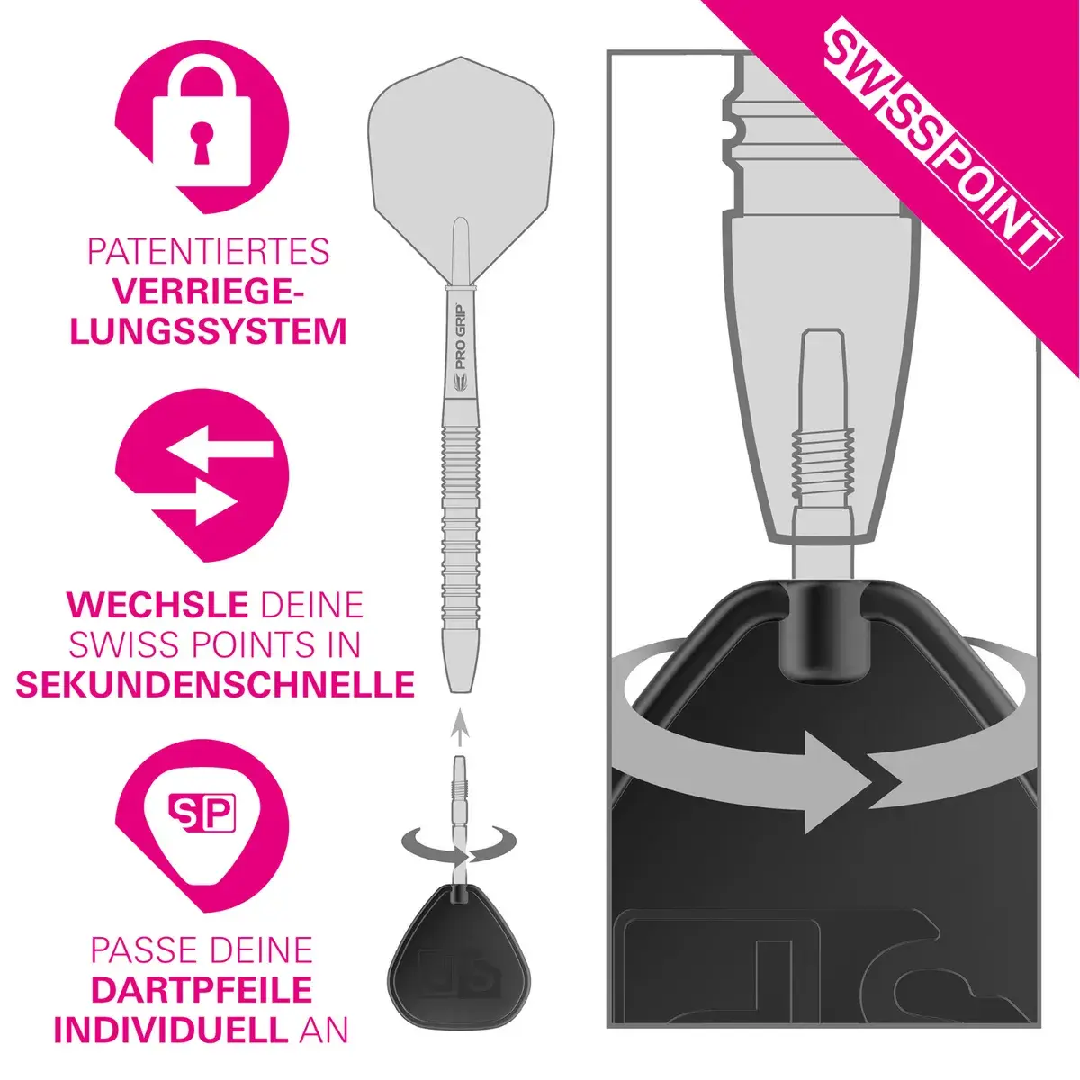 Swiss Points sind nur mit Target Darts SP-Barrel kompatibel.
